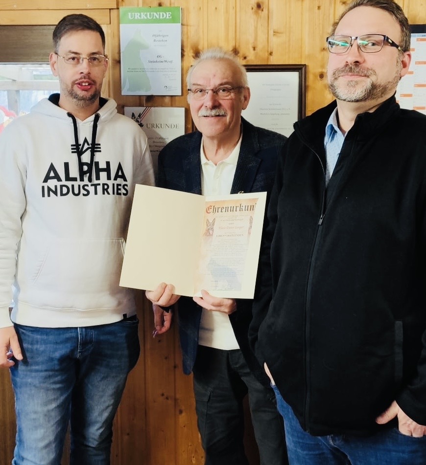 Klaus-Dieter Langer die Urkunde, ausgestellt vom Verein für Deutsche Schäferhunde