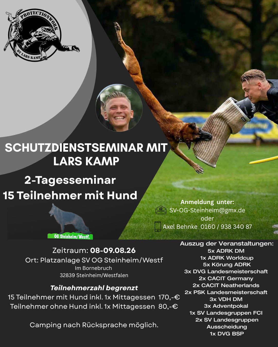 Herzlich willkommen beim SVOGSteinheim-Westfalen! Wir sind spezialisiert auf Hundesport nach IGP und bieten Training in den Bereichen Unterordnung, Schutzdienst und Fährte an.